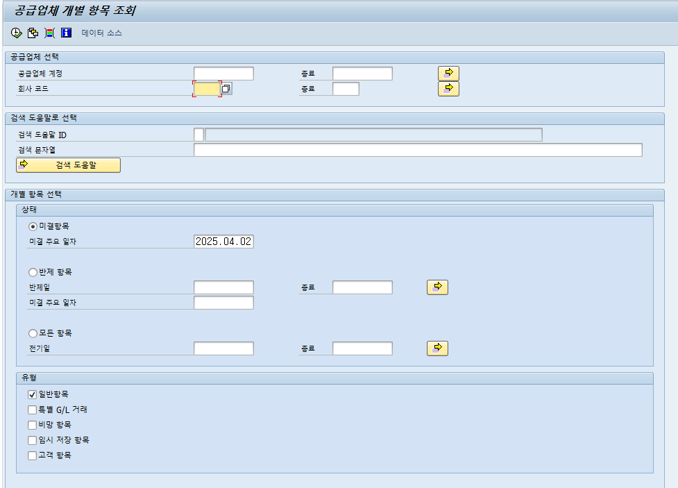 - 송장 전표, 지급 전표 등 공급업체 관련 회계전표 조회